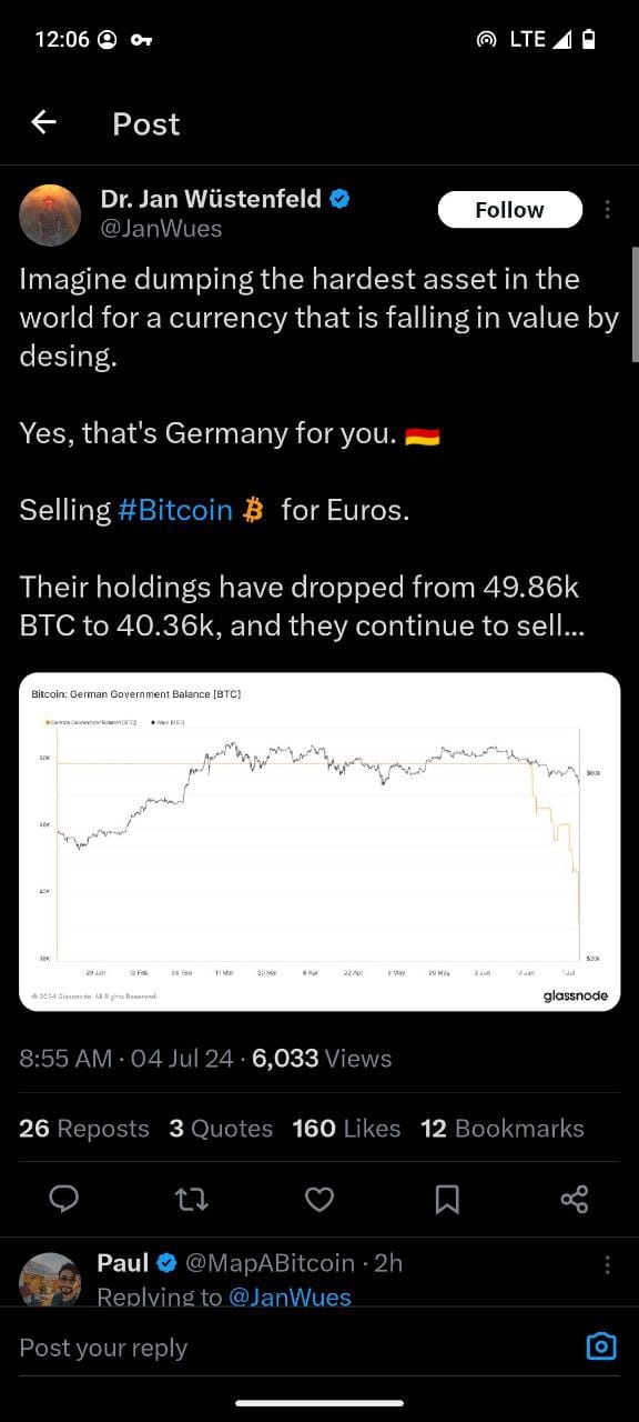 Dr. Jan Wüstenfeld’s tweet on July 4, 2024, highlighted the significant reduction in Germany's Bitcoin holdings, dropping from 49.86k BTC to 40.36k BTC within a short period. The decision to sell Bitcoin for Euros has been met with criticism, especially as the Euro itself is experiencing devaluation pressures. This sell-off has prompted questions regarding the rationale behind Germany’s decision and its timing.